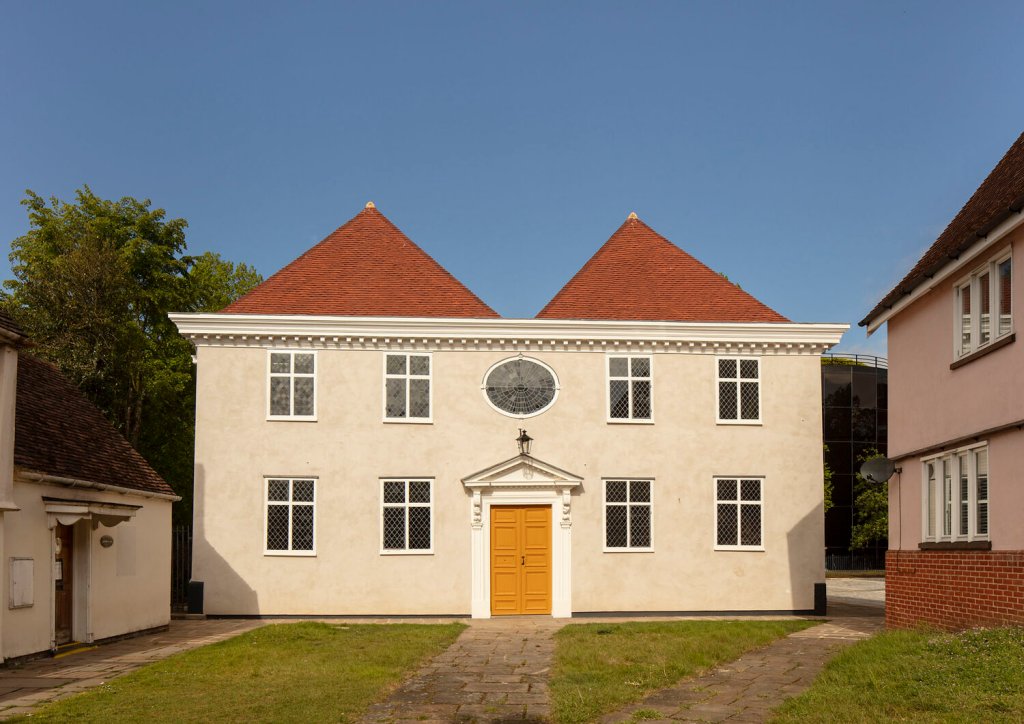 In the heart of the town centre, The Unitarian Meeting House is a key part of the heritage of Ipswich. The building, so unassuming from the outside, but so breathtaking within, is loved by many in the community, as well as those who worship there. The building is unique, an oasis of calm both inside and out (the lawn is frequently enjoyed by picnicking office workers). The black glass windows of the Willis Towers Watson offices next door, also Grade I listed and erected between 1970 and 1975, cleverly reflect the Meeting House, built in 1699.