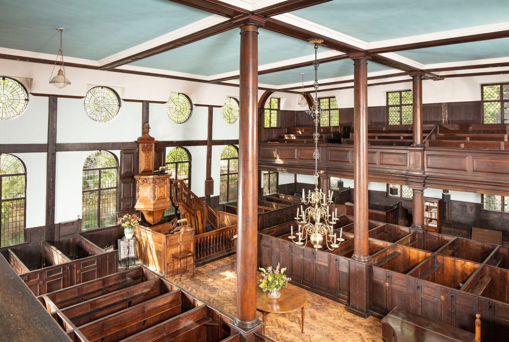 Built as a place of worship for dissenters of the established Church of England, the Meeting House still has many original features, including boxed pews and a huge Dutch brass chandelier.